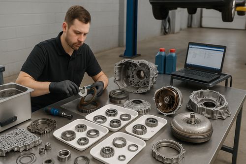 Корпуса промывается растворителем, сам гидроблок проходит очистку ультразвуком. Дефектовка включает замер толщины фрикционов, состояния насоса, геометрии дисков, люфтов втулок.